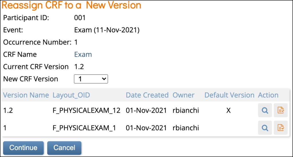 Example C: The maximum number of repeats in the original Form version exceeds that in the new Form version: