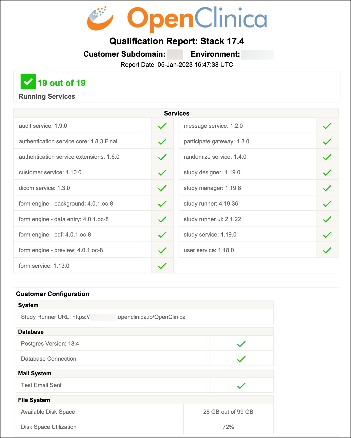 The Download Qualification Report button will download the most recent qualification report. This is updated for each release and includes the information in the sample report below: