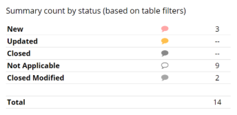 The Query Summary Table displays a count of all query resolution statuses and their totals as shown in the Queries Table.