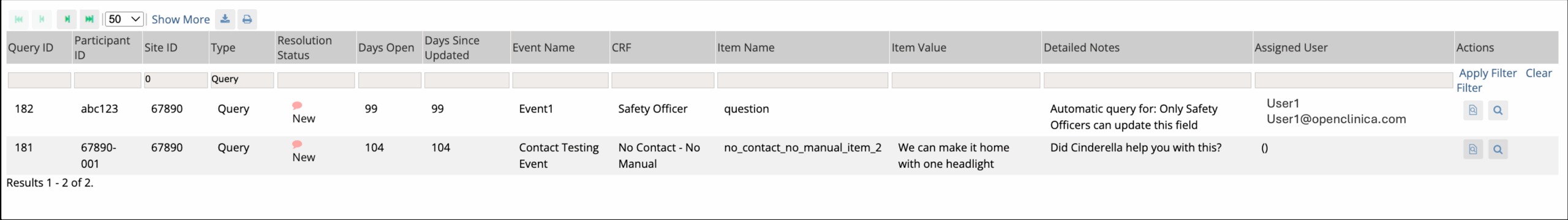 ℹ️ Note: Queries created or closed automatically by OpenClinica (for example, when you leave a form, remove a form or event, publish a form version, or run an import) are attributed to the System user in the Queries table. This distinguishes them from queries added manually by users.