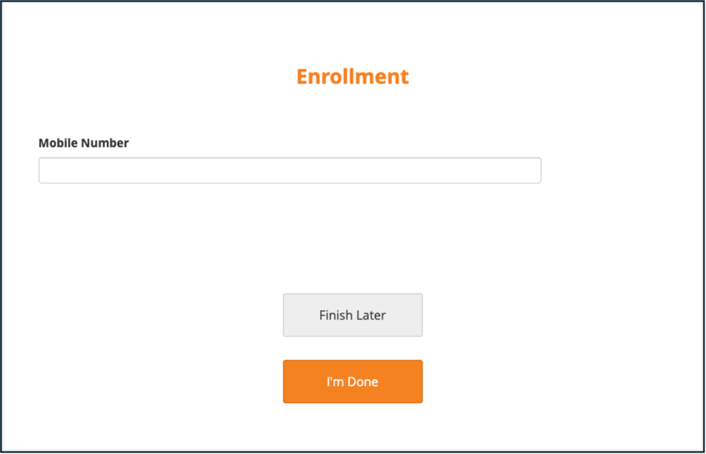 On the last screen, click the I’m Done button to complete the form. If you need to finish later, click Finish Later. You can resume or edit the form at any time by clicking the Review button next to the form on the Participant Dashboard.