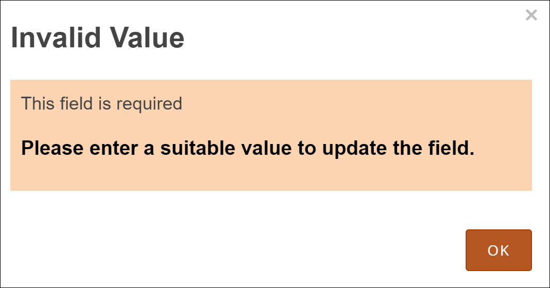 - A message indicating that the field is required appears.