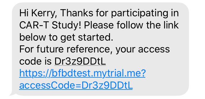 If you selected Invite via Mobile, the Participant will receive the following SMS text message: