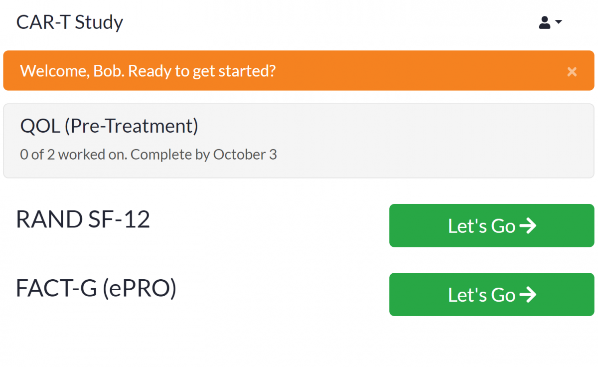 - Click the Let’s Go button or link to go to your Participant Dashboard.