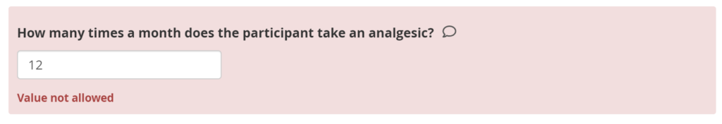 If you enter a value that is invalid due to a constraint or do not respond to a required field, a message appears on the Form.