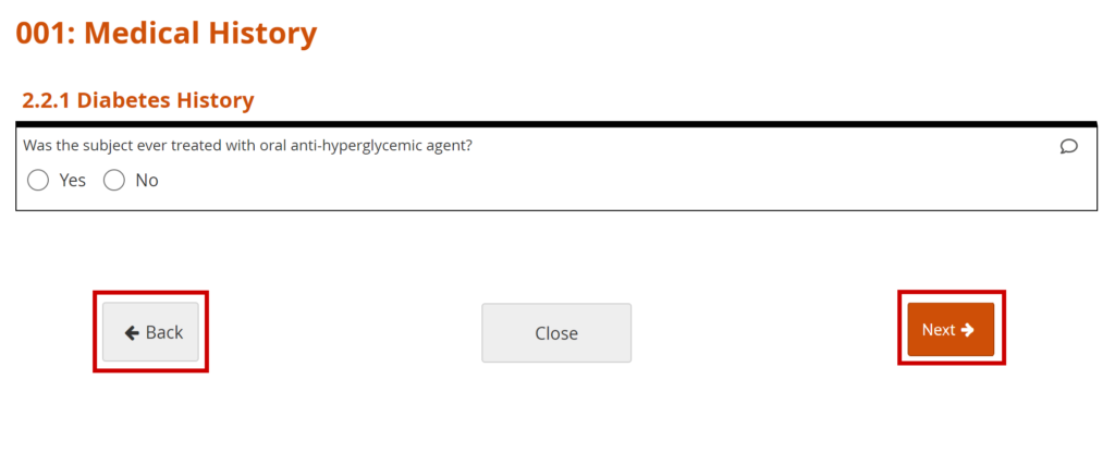 Click the Next button to proceed on the Form, and click the Back button to return to the previous page of the Form.