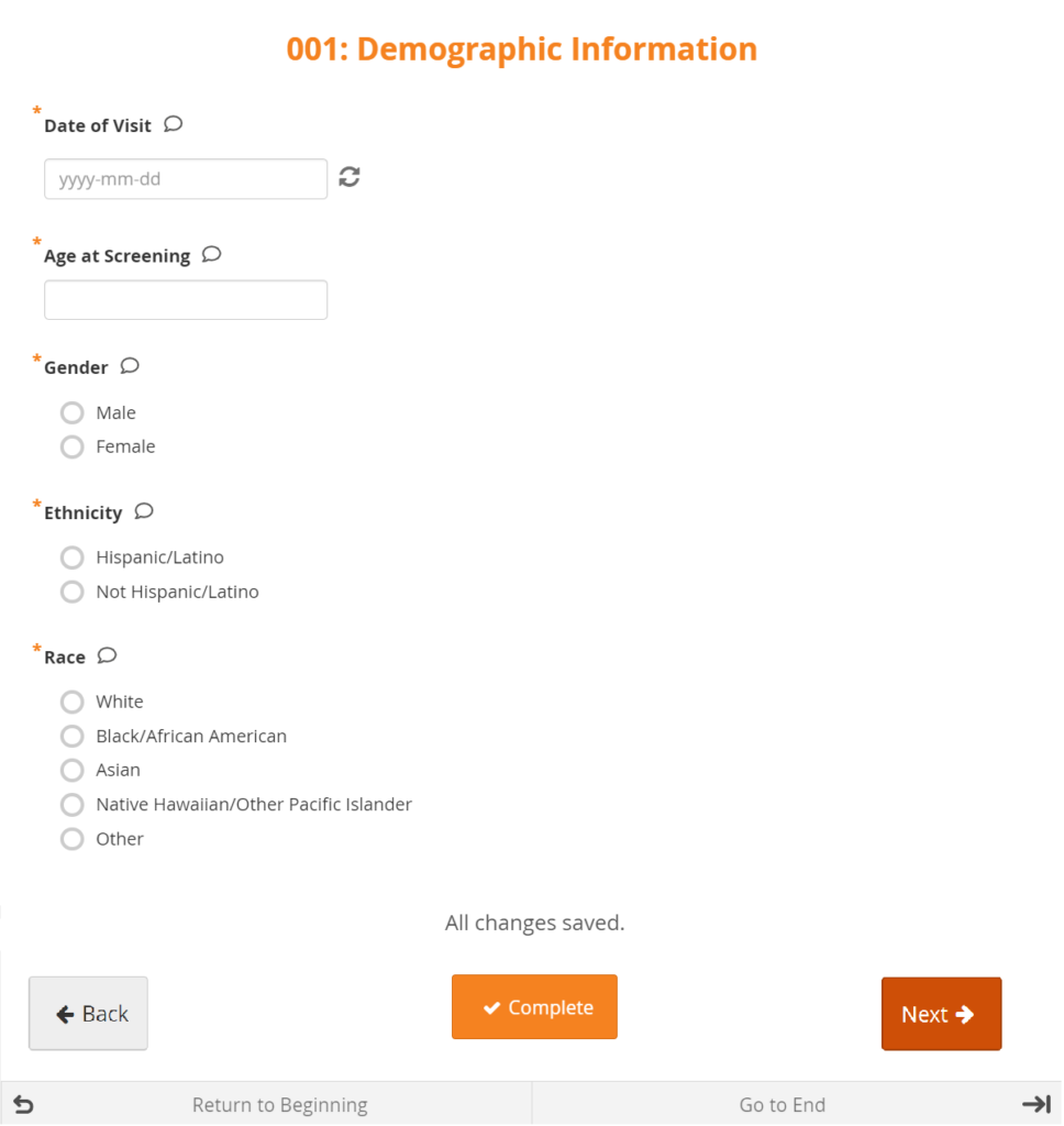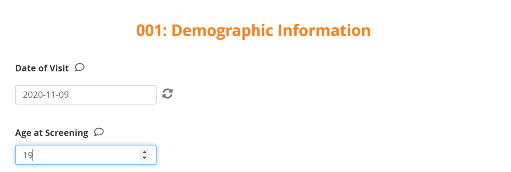 Forms are a collection of data entry fields for an Event or multiple Events. For example, the First Visit Event might contain the Eligibility, Consent, and Demographics Forms.