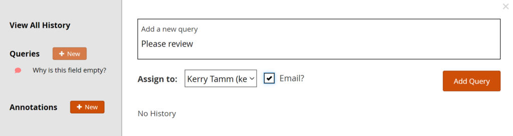 The system creates queries automatically if you close a Form that has unaddressed errors or you can manually create a query.