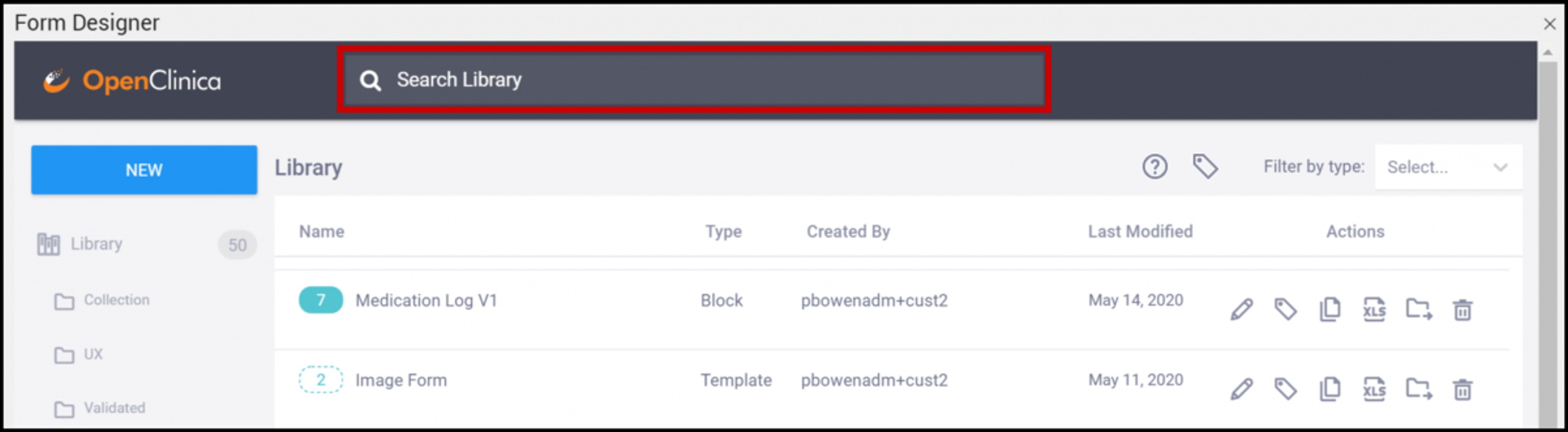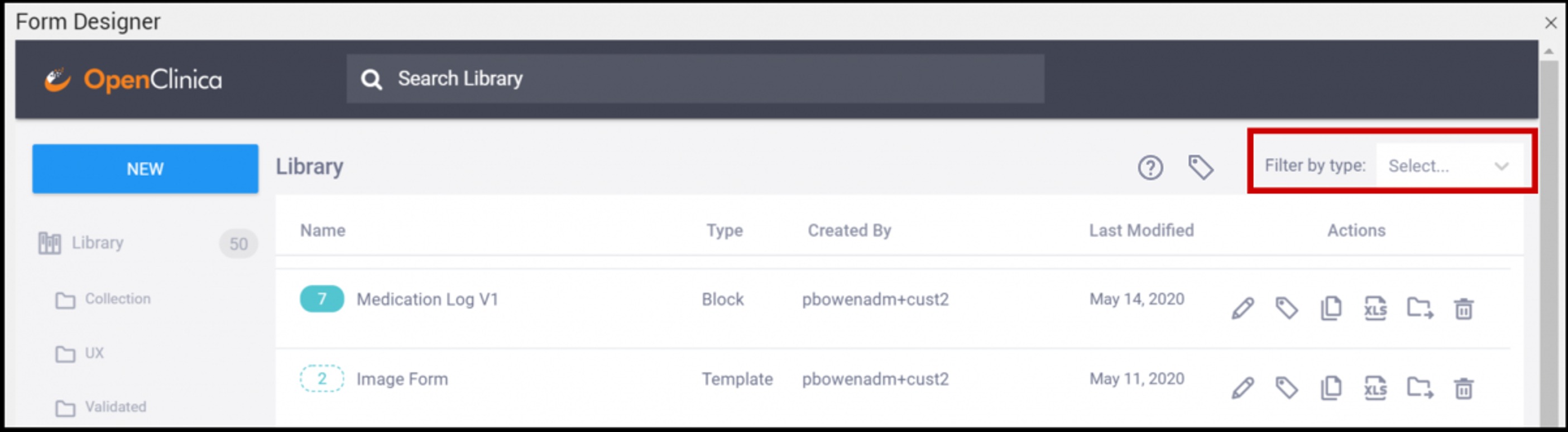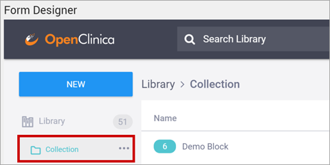 If available, items display their labels and the number of questions included in a block or template. You can also add new items to the Content Library while working in Form Designer.