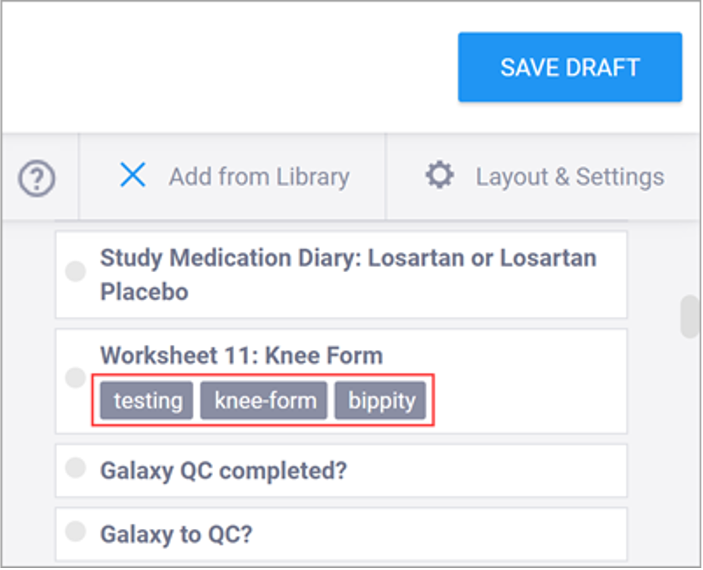 The Content Library allows you to store commonly used items—such as vital signs or laboratory questions—and add them to forms as needed. Reusing library items saves time because you do not need to recreate the same content for each form.