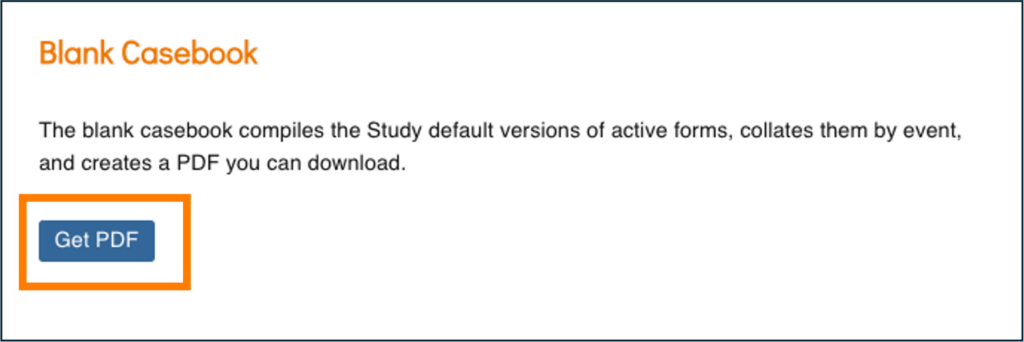 - The Blank Casebook page opens. Click the Get PDF button to download the Blank Casebook.