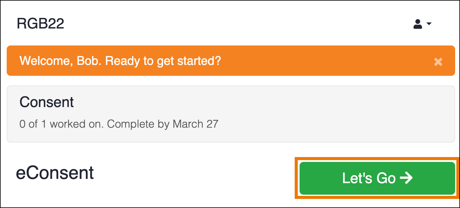 When a participant opens their dashboard, they will see the eConsent form on their dashboard with the date that the Visit event was scheduled.