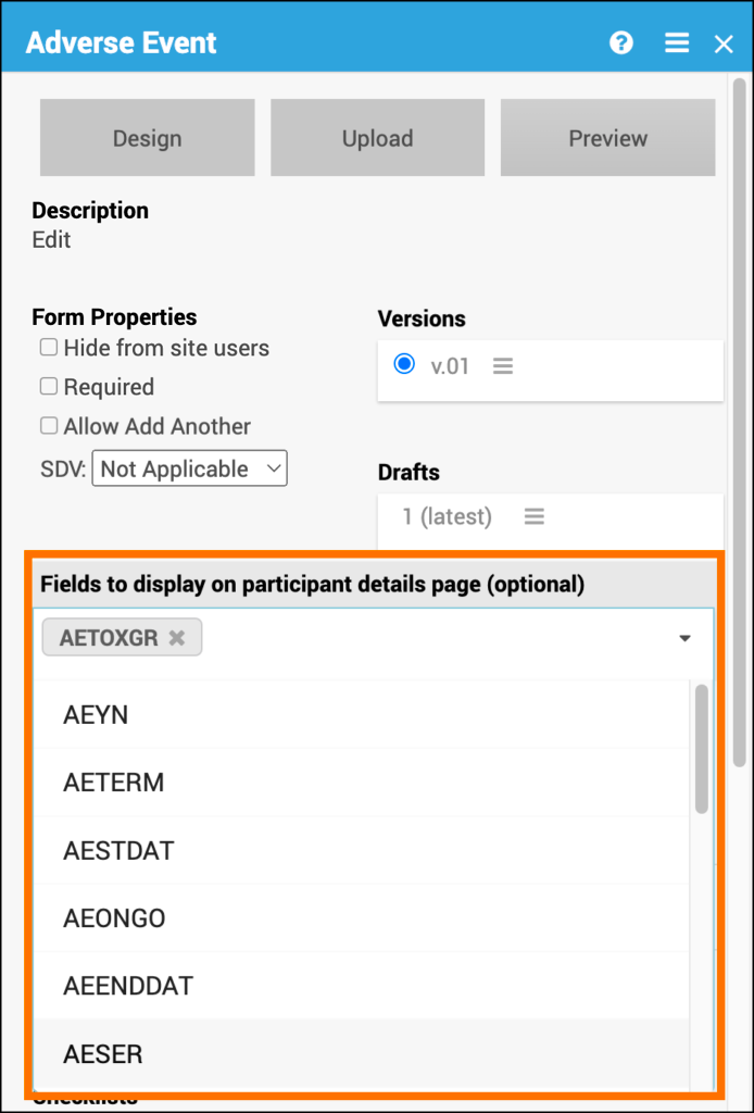 ℹ️ Note: When you copy a Form to another Event, any changes you make to one copy are automatically applied to the copies. All of the preselected properties (Hide from site users, SDV, Participate Properties) also get migrated to the new form card. If the form is just typed in, only the form's definition will match and none of the former card's properties will cross to the new form card.