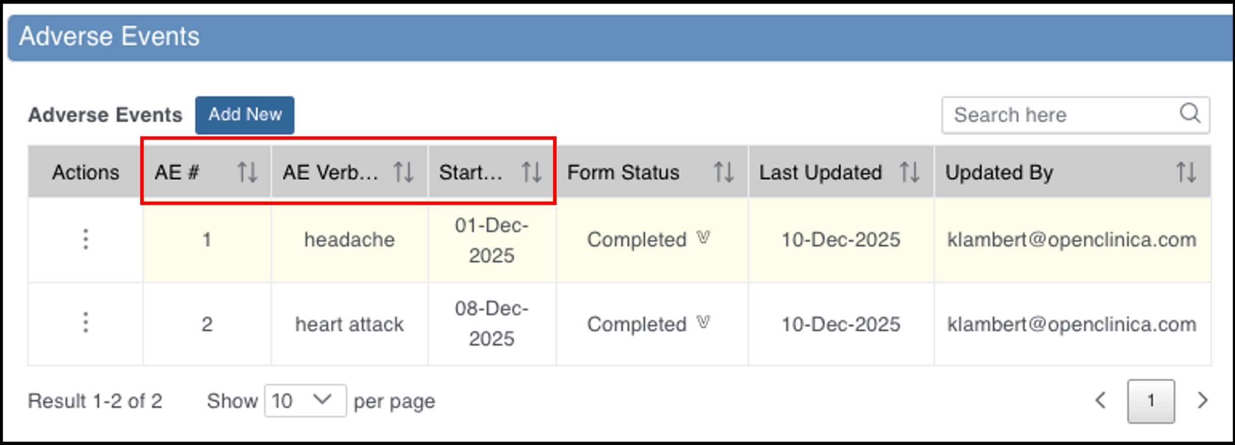 ![]() | Common | An event that is not necessarily associated with a visit date. | Early Withdrawal or Termination (non-repeating); Adverse Events (repeating) |
