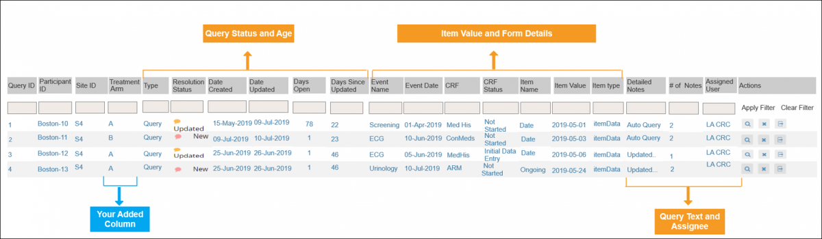 - Table Design: Allows you to add custom columns to the Participant Matrix and Queries Table or define Data Review Tables.